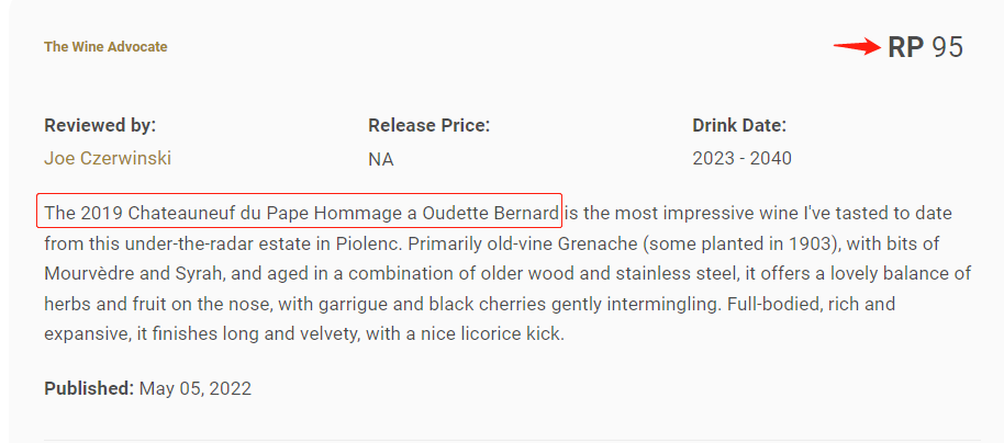【產品名】 Châteauneuf-du-Pape Grande Réserve Hommage À Odette Bernard Rouge